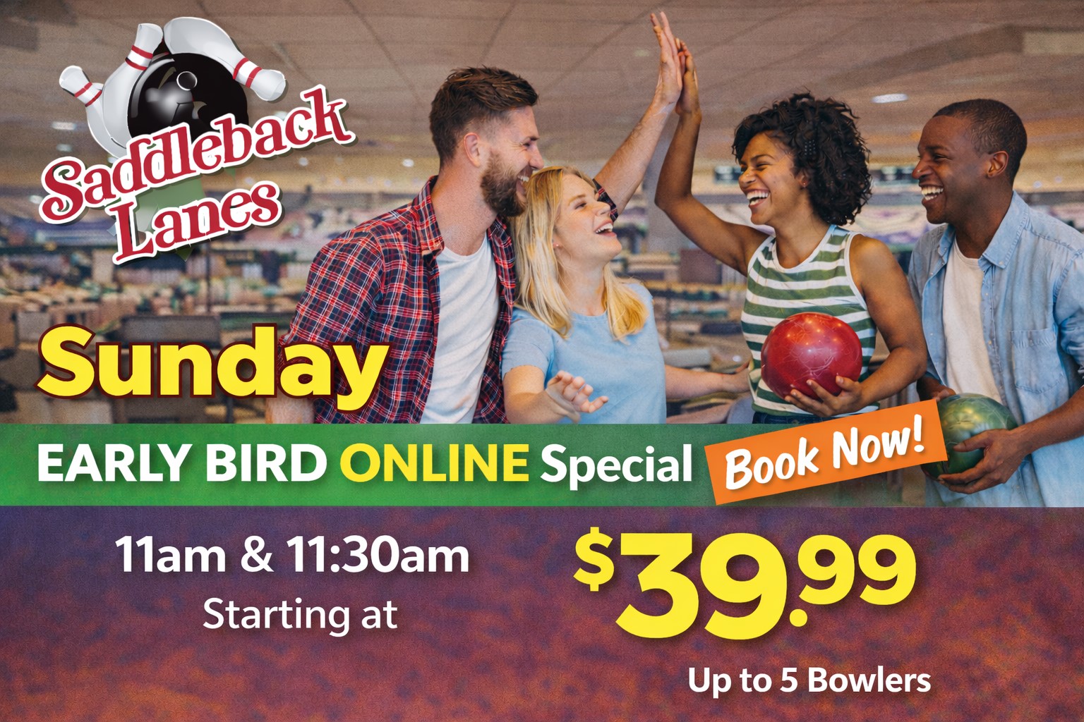 It’s easy! Just pick a time to come, place a deposit and show up ready to bowl!